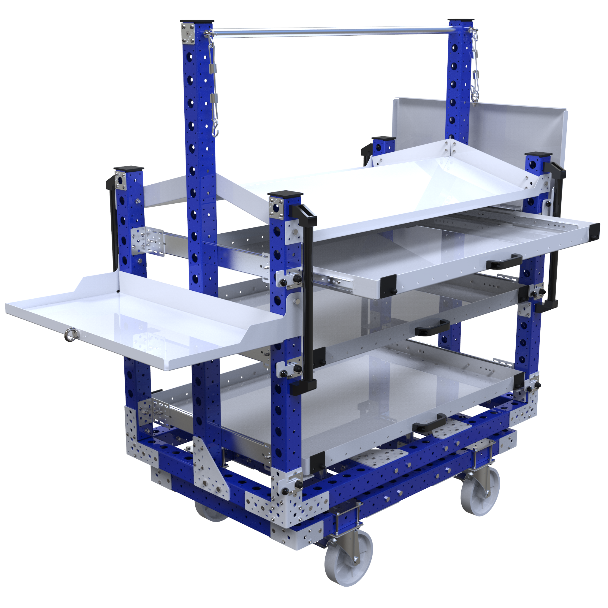 Feel free to contact our specialists if you want a handle, floor brake, different dimensions, or configuration. we will then build a custom solution with our modular construction systems.