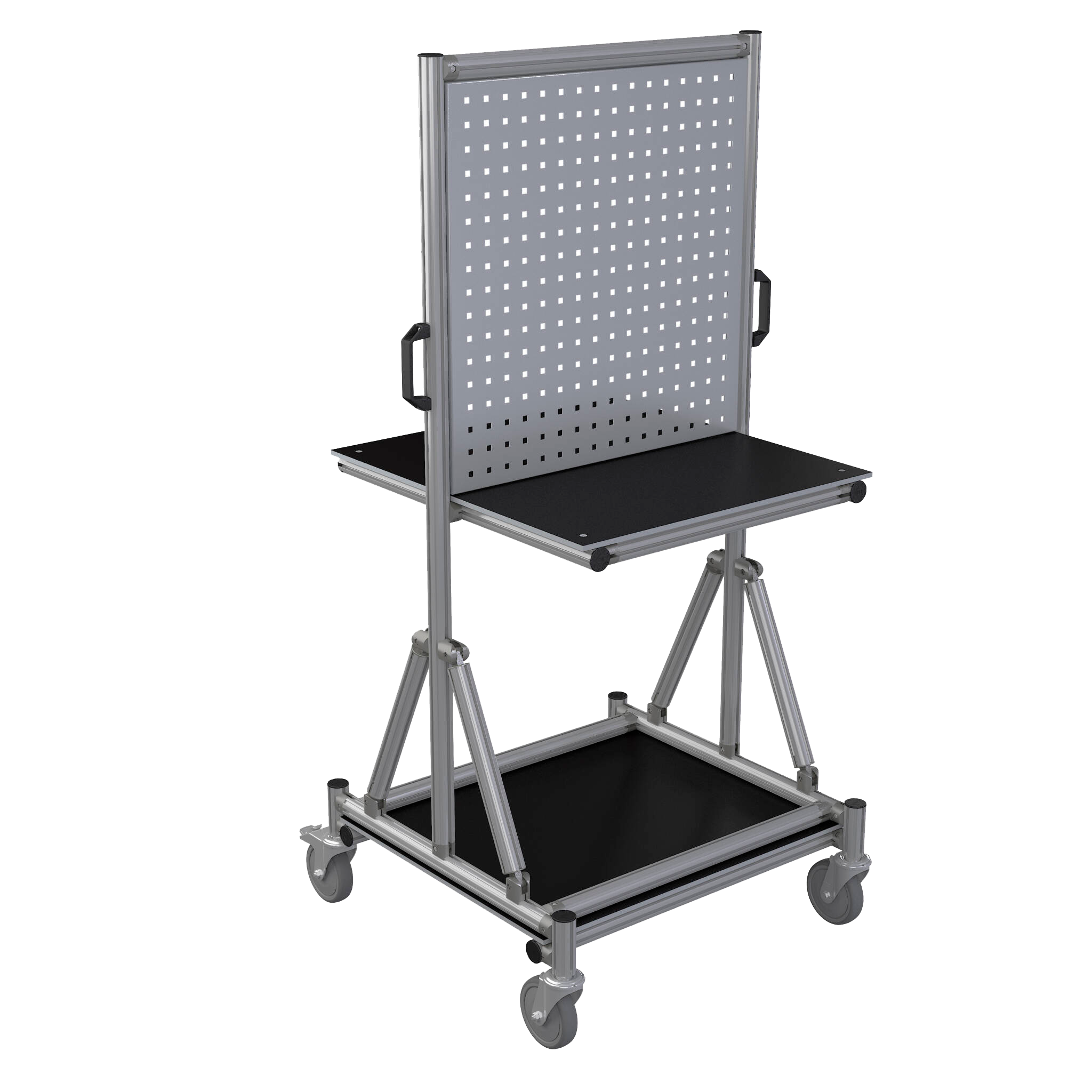 Customize the trolley to your needs with various accessories such as perforated panels, floor brakes, monitor mounts, and scanner holders