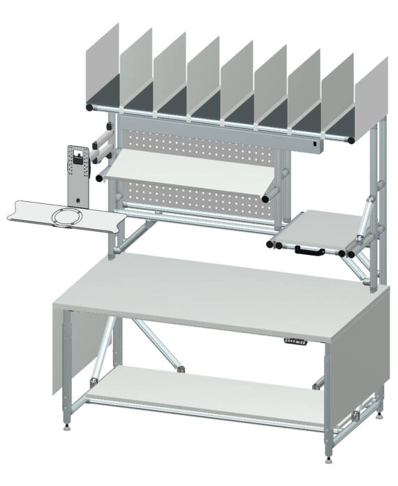 Met ons modulair pipe & joint systeem ontwerpen en bouwen we inpaktafels op maat. De afmetingen kunnen vrij gekozen worden, maar daarnaast zijn er nog tal van mogelijkheden zoals een bovenbouw voor uw balancers en verlichting, ladesystemen, 5S perfo borden, toeleverschappen, monitorsteunen, tafelblad naar keuze etc. En aangezien we ergonomie hoog in het vaandel dragen, zorgen we ervoor dat de onderdelen in grijpbereik staan of kan zelf een tafelblad met buikuitsparing voorzien worden. En dan hebben we natuurlijk ook nog onze hoogte verstelbare werktafels waarmee u de beste ergonomische werkomstandigheden verkrijgt.