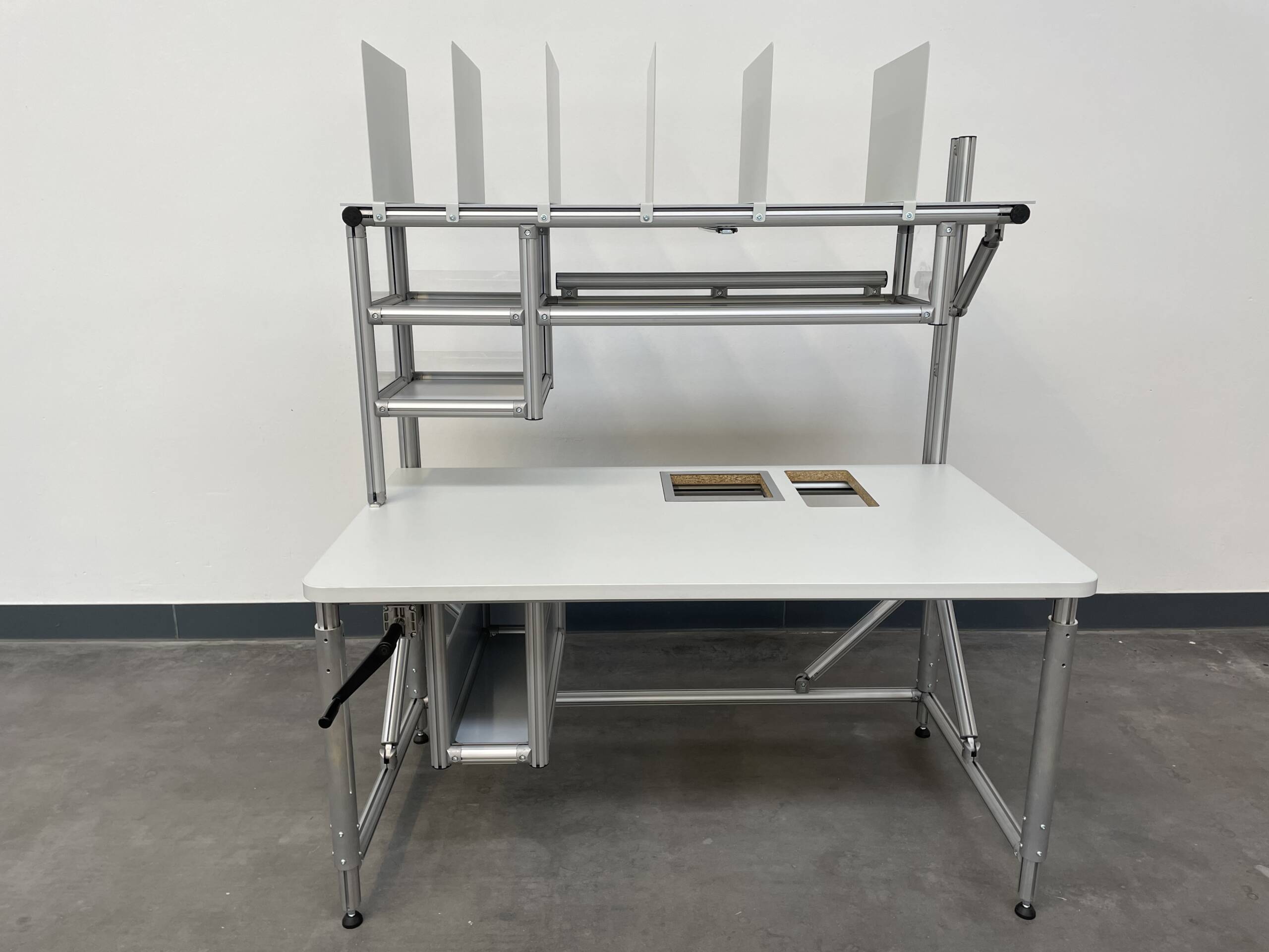 Met ons modulair pipe & joint systeem ontwerpen en bouwen we inpaktafels op maat. De afmetingen kunnen vrij gekozen worden, maar daarnaast zijn er nog tal van mogelijkheden zoals een bovenbouw voor uw balancers en verlichting, ladesystemen, 5S perfo borden, toeleverschappen, monitorsteunen, tafelblad naar keuze etc. En aangezien we ergonomie hoog in het vaandel dragen, zorgen we ervoor dat de onderdelen in grijpbereik staan of kan zelf een tafelblad met buikuitsparing voorzien worden. En dan hebben we natuurlijk ook nog onze hoogte verstelbare werktafels waarmee u de beste ergonomische werkomstandigheden verkrijgt.