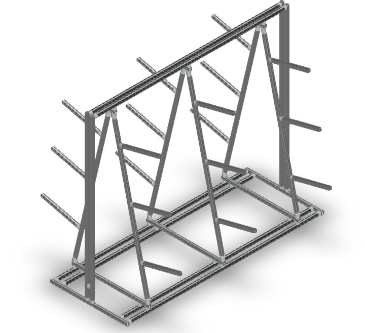 Door de schuine opstelling van de draagarmen kunnen de onderdelen niet vallen.