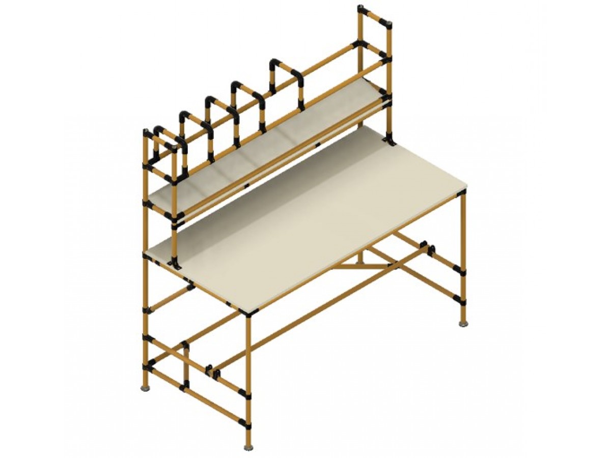 Deze prijsgunstige industriele inpaktafel is voorzien van een legbord en vakverdelingen voor karton. Deze tafel is voorzien van een 28 mm melamine werkblad met kantenband wat voor een mooi en onderhoudbare afwerking zorgt. Verpakkingsfolie is eenvoudig afrolbaar via de voorziene buis onderaan de tafel. Deze kan ook achteraan het werkblad voorzien worden met een afsnij-unit. Het modulaire concept laat toe de tafel perfect op jouw gewenste maat te maken en verschillende accessoires toe te voegen. Neem zeker contact op als je nood hebt aan wielen, een ander type tafelblad, verlichting, een gereedschapsbord, monitorarm en dergelijke. De tafel kan ook voor een hoger draagvermogen worden uitgevoerd of kan zelfs ESD veilig gemaakt worden. Technische specificaties: - Categorie: industriële werktafel - Afmetingen: 1700 x 800 x 1700 mm - Draagvermogen: 120 kg