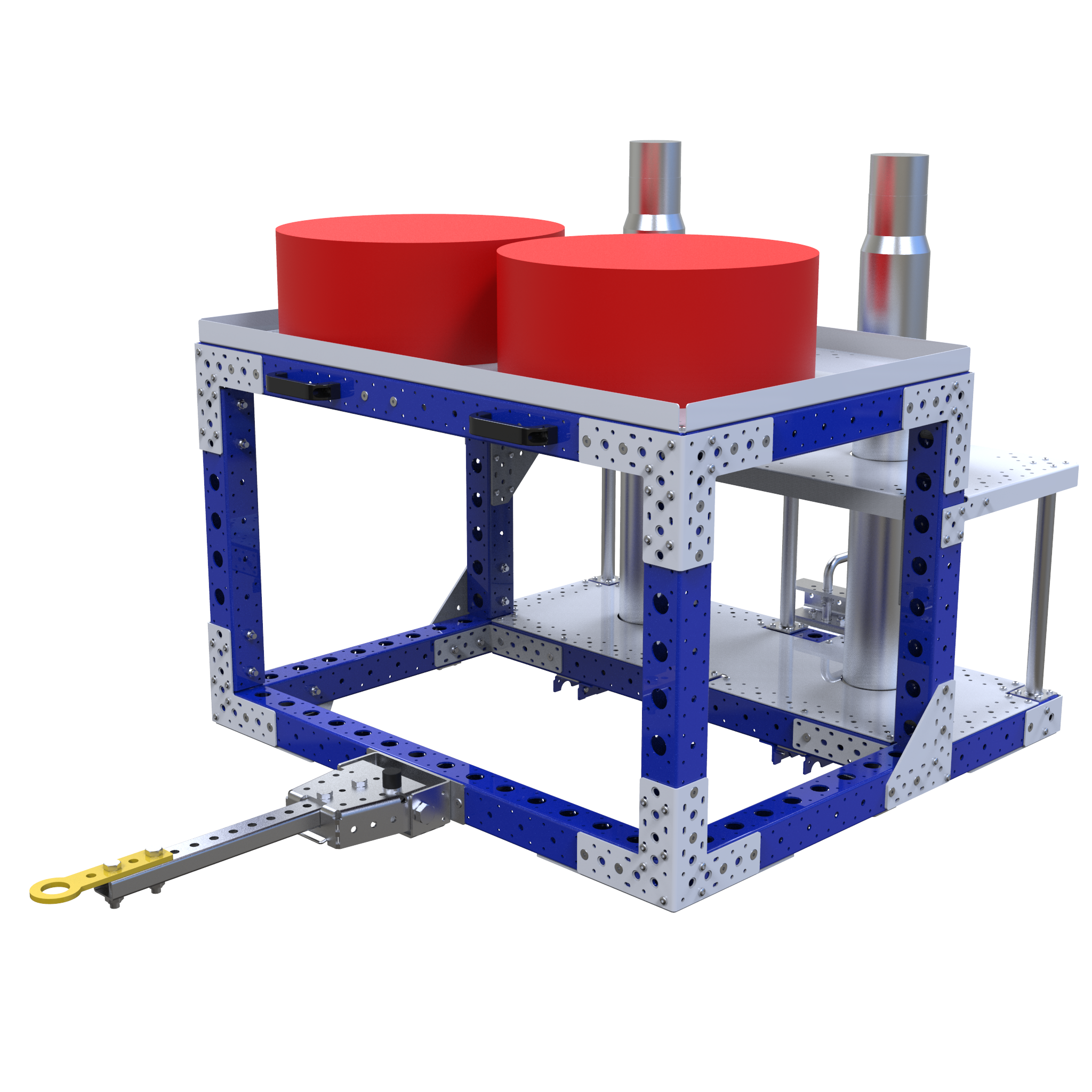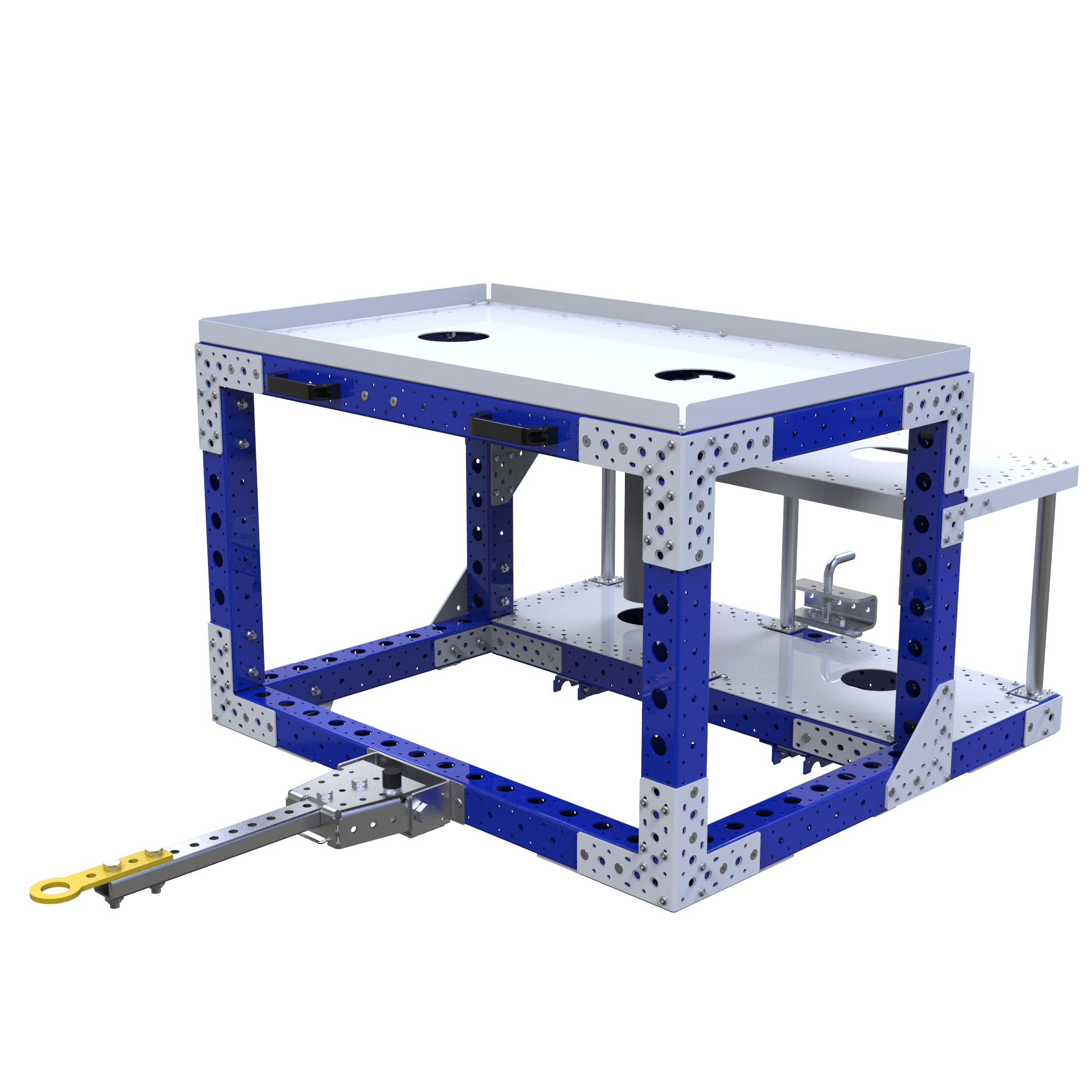 Deze kar is ontworpen met een trekhaak waardoor meerdere van deze karren tegelijk kunnen verplaatst worden in een treinvorm. Verder is er ook een handvat en 4 PU wielen (2 vast en 2 zwenkwielen met rem) die zorgen voor een zo goed als geluidsloos transport.