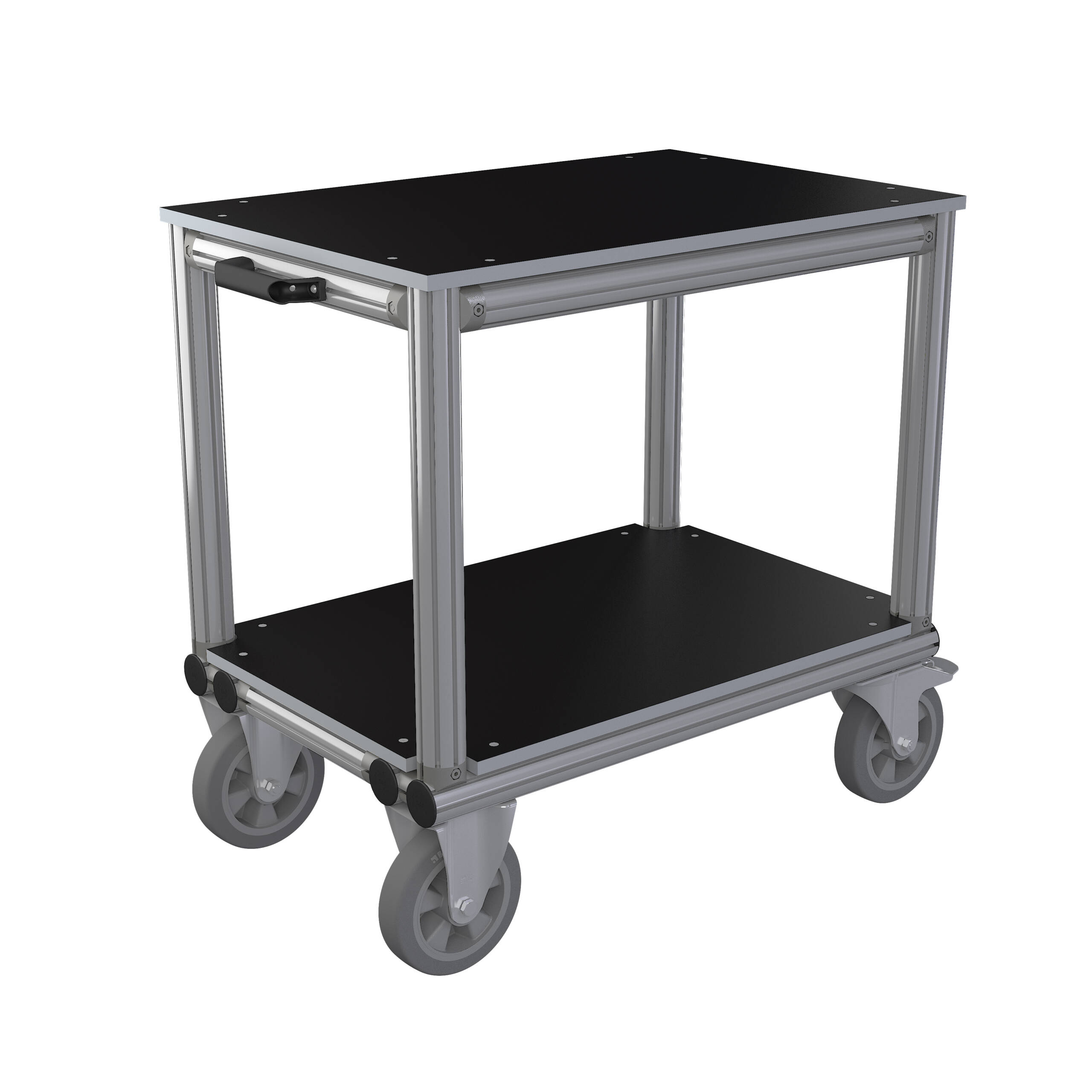 Deze industriële plateauwagen kan als transportkar en als mobiele assemblage plek gebruikt worden en is ontwikkeld om bukken te vermijden waardoor de opertoren ergonomischer kunnen werken. Het onderste laadvlak heeft een hoogte van 312mm en de bovenste plateau zit op 915mm hoogte. De plateau's zijn gemaakt van panelen met een zeefdrukcoating. Dit zorgt voor een slijtvast en antislip oppervlak. Verder is er ook een handvat en hoogwaardige kogelgelagerde wielen van polyurethaan, ø 200 mm, grijs, streeploos. Twee vaste wielen en 2 zwenkwielen met rem. Draagvermogen: 500 kg, Geleverd in onderdelen - eenvoudig te monteren. Dankzij het modulaire concept zijn ook andere configuraties en afmetingen mogelijk. Vraag ernaar ! Technische specificaties: - Categorie: plateaukar - Industrie: Automotive, wapenindustrie, Defense Equipment, Distribution, Industrial Machinery, Tier One Suppliers, Wind & Energy - Transportmethode: manueel - Afmetingen: 900 x 600 x 915 mm - Draagvermogen: 500kg - Wieldiameter: 200mm - Wiel type: Polyurethaan